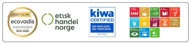 Artisti er ISO-sertifisert i Ledelsessystem for kvalitet (NS-EN ISO 9001:2015) og Ledelsessystem for miljø (NS-EN ISO 14001:2015). Vi har vært medlem av Etisk Handel Norge siden 2008 og har gull-status fra EcoVadis på vårt bærekraftsarbeid.